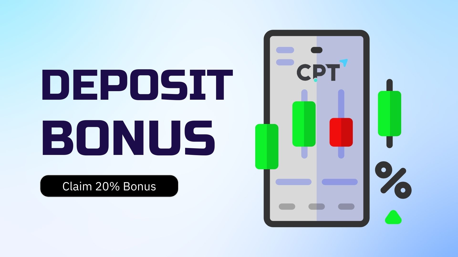 The 20% deposit bonus program is a bonus for new customers When making a minimum deposit Under real trading conditions offered by CPT Markets. Unlock Up To 20% Bonus And Trade Smarter Today! Join CPT Markets now and receive a trading bonus of 20% on registration.