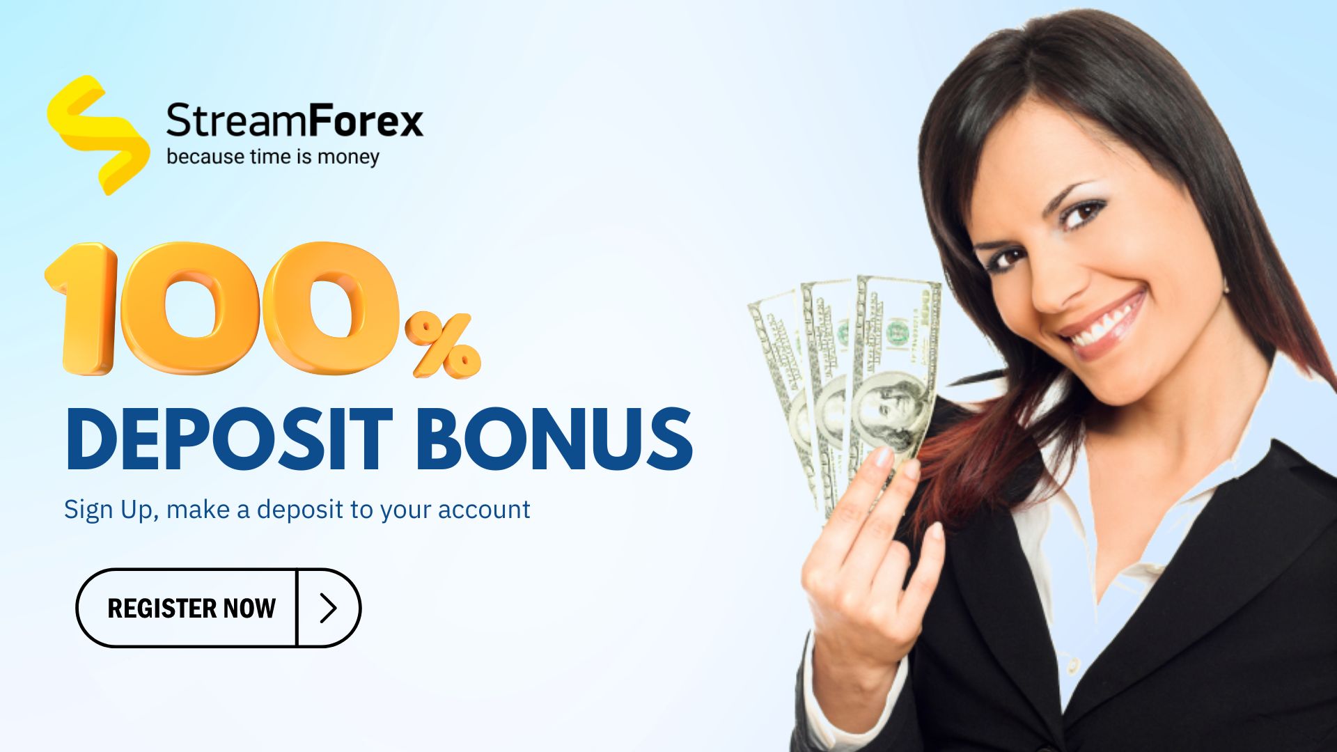 StreamForex has launched a deposit bonus up to 100% promotion for new customers When making a minimum deposit Under real trading conditions. Boost your trading potential with additional funds. Sign Up, make a deposit to your account and get up to 100% of your deposit.