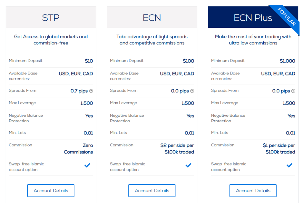 - STP: Basic tier with 0.7-pip spreads, no commission.