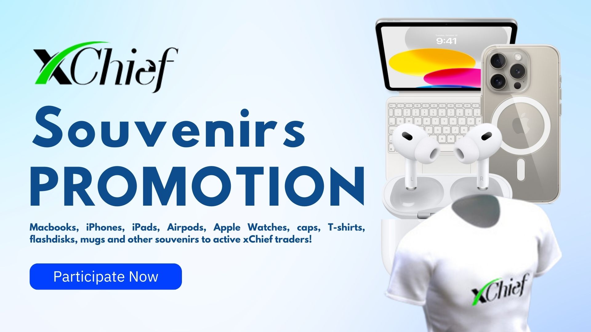 xChief.com launch Souvernirs Promotion 2024 for the traders of India, Indonesia, Iran, Malaysia, Nigeria, Ghana, Benin, and Vietnam When making a minimum deposit Under real trading conditions. xChief offer Macbooks, iPhones, iPads, Airpods, Apple Watches, caps, T-shirts, flashdisks, mugs xChief traders!